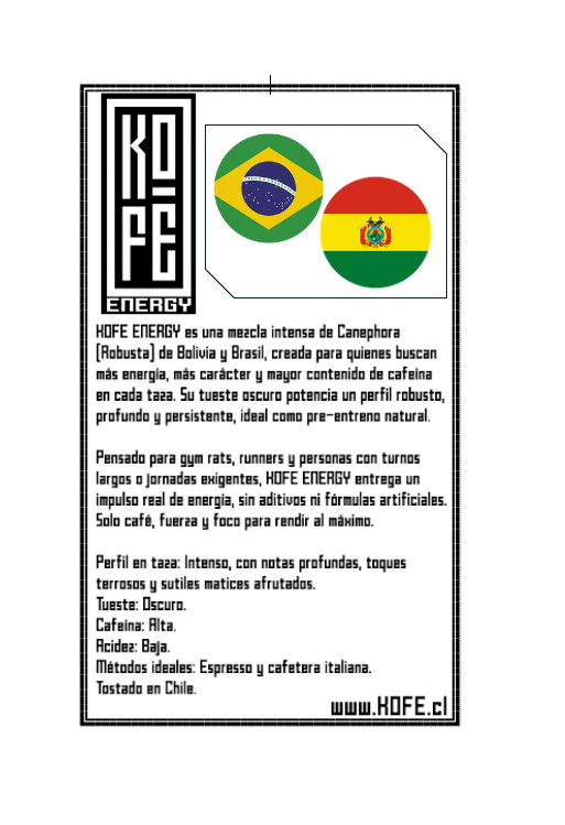 Energy KOFĒ es una mezcla potente de dos cafés Robusta seleccionados de Brasil y Bolivia, creada para quienes buscan más energía, más cuerpo y máxima intensidad. Un café diseñado como pre-entreno natural, ideal para running, gym o para comenzar el día con el foco al máximo. Energy KOFĒ puede aportar hasta casi el doble de cafeína que un arábica.